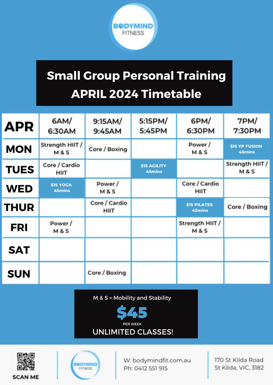Click here for our timetable